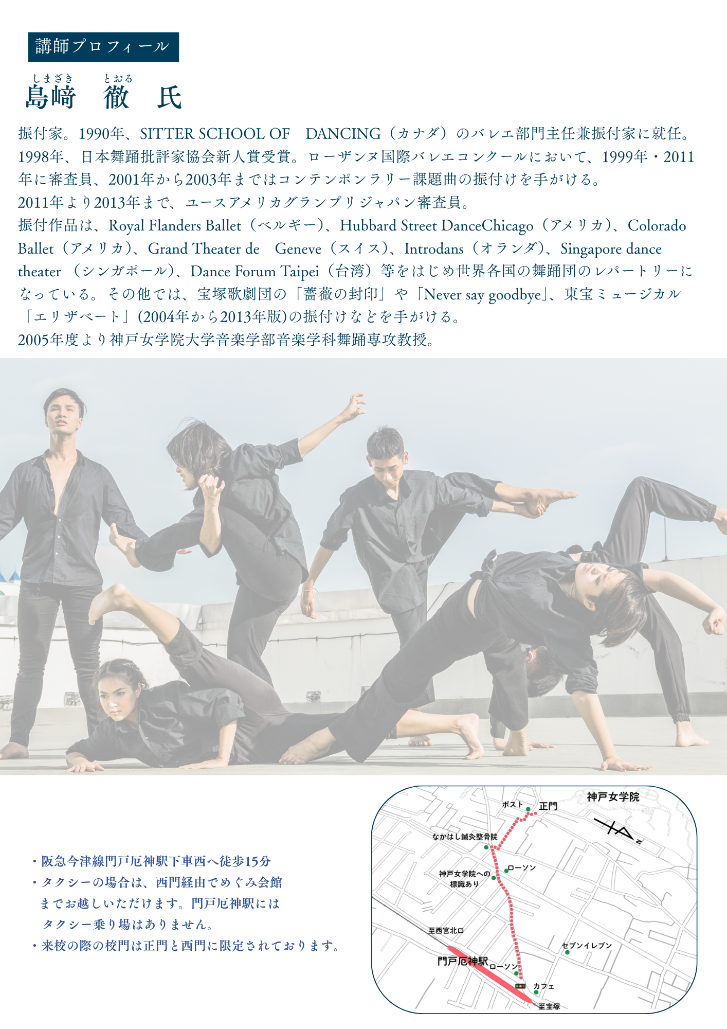 音楽学部音楽学科舞踊専攻教授の島﨑徹先生にご講演いただきます。